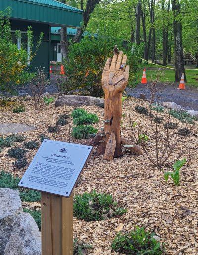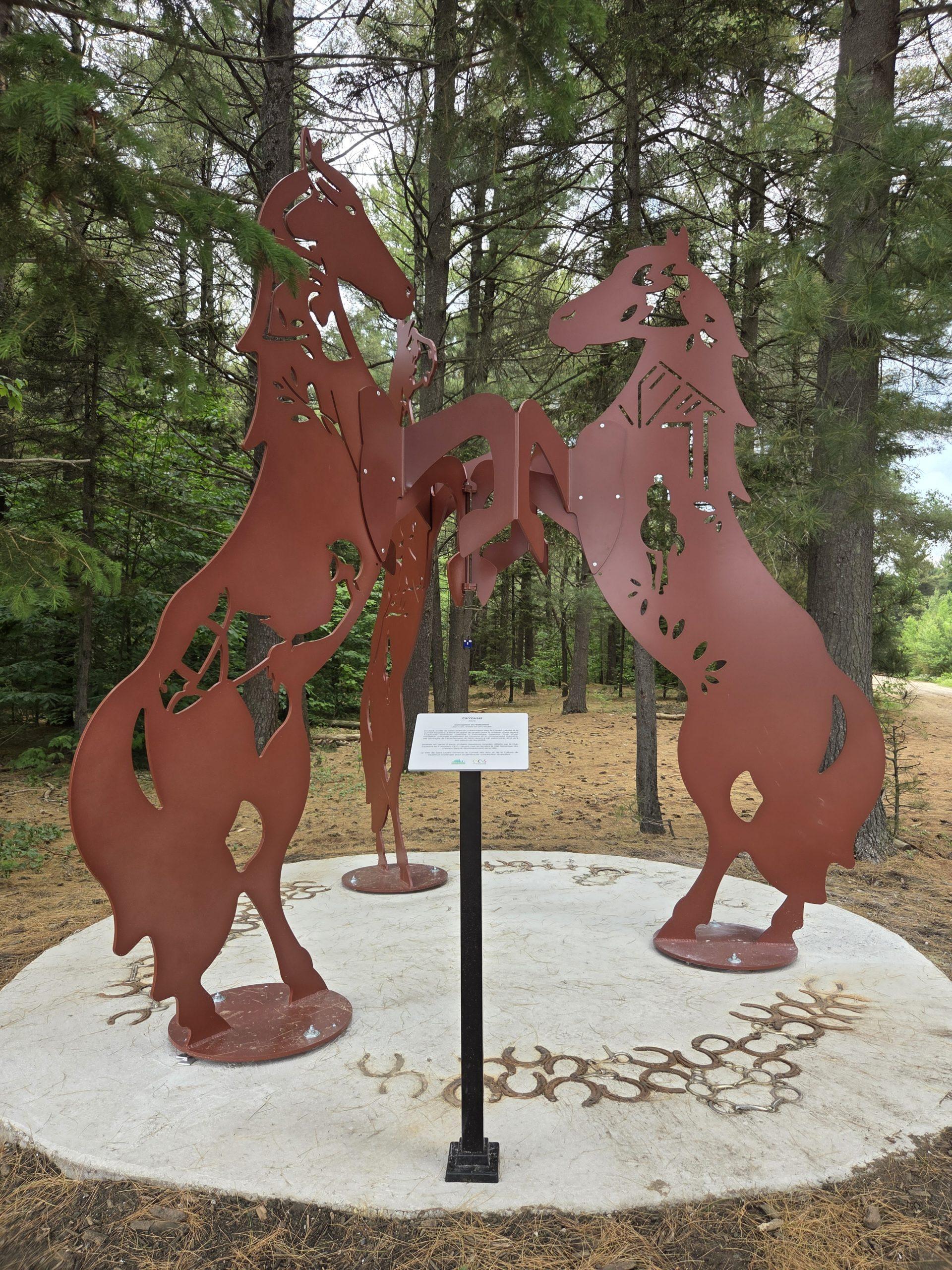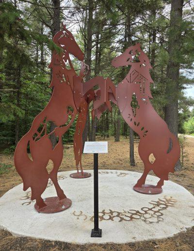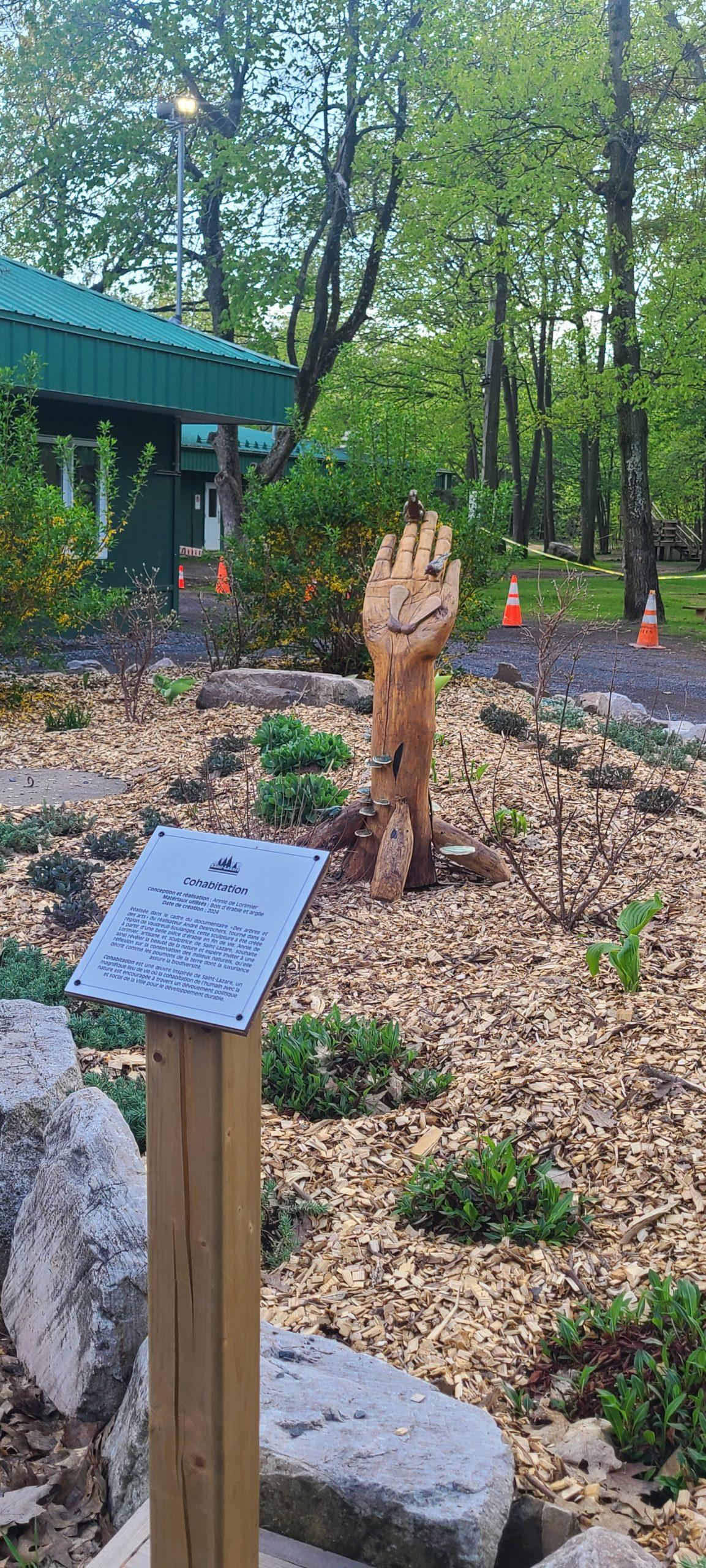La sculpture « Cohabitation » de l’artiste Annie de Lorimier, installée au parc nature Les Forestiers.