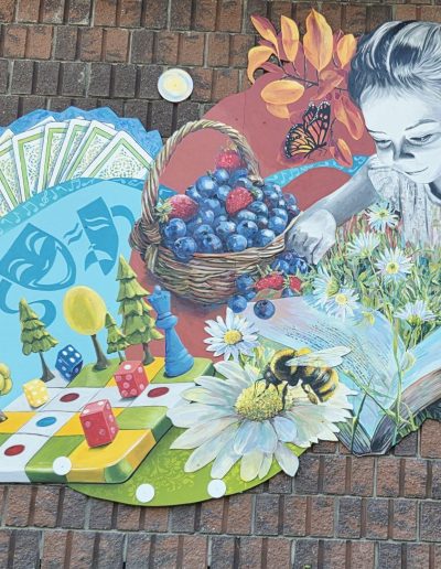 Une murale de l’artiste Mélissa Del Pinto, en collaboration avec l’artiste lazaroise Jeniffer Mendoça, sur le mur de Chez Maurice, adjacent à la Place Maurice-Chartrand.