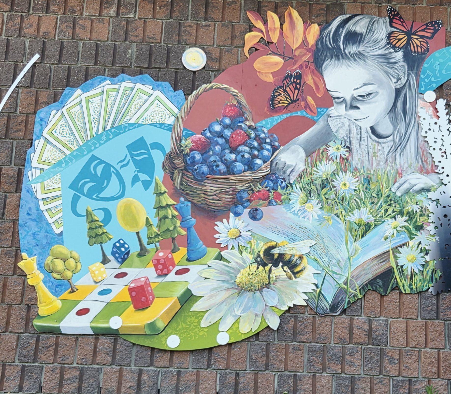 La murale « Notre centre communautaire, notre cœur battant », créée dans le cadre du 150e anniversaire de la Ville par l’artiste lazaroise Madeleine Turgeon, avec la participation d’Agnès Robin et le soutien de Nancy Lépine, enseignante à l’école secondaire de la Cité-des-Jeunes, ainsi que les élèves du programme Arts-études.